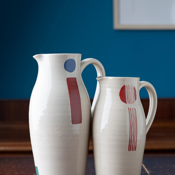 Elaine produces small batches of handthrown work including bowls, mugs and other tableware onto which she paints and draws her original designs.