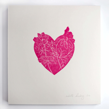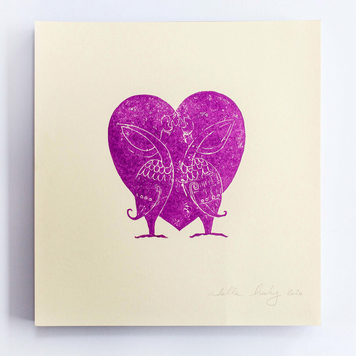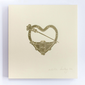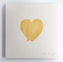 Designs are shaped by, incorporated into, emerge out of or appear to be escaping the heart in their own unique way. Each design is individually printed to create a hand printed product and be part of the hand-made and hand-crafted community and craft industry. The hand-printing practice is a crucial element for the product and for the customer. The print market is competitive and flooded with digital prints. The design narrative range has a landscape scope through the lens of History. The brand name informs the customer of the print subject, the process and hand-printing practice creates a unique gift every time. Hand drawn, hand craved and hand printed in Ireland.