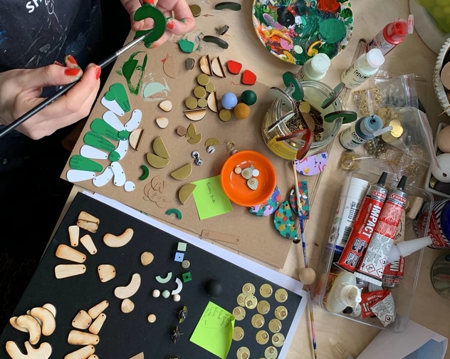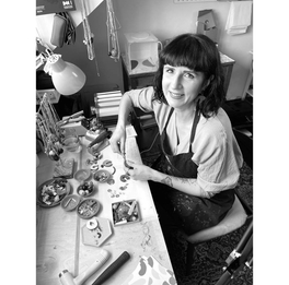 I’m Sarah Carroll Kelly and I make bold, unique, handcrafted statement jewellery from unpredictable materials, such as wood, brass, plastic, silicone and clay. Pieces are designed, wood cut and painted and clay moulded and cast in Dublin. Wherever possible other parts are sustainably sourced, and finished jewellery makes its way to you in recyclable packaging.