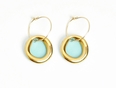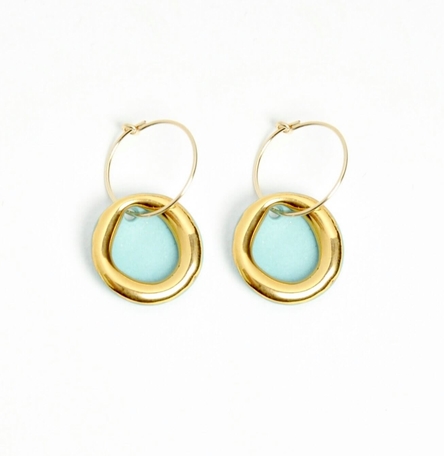 Handmade earrings made from pastel matte mint porcelain and genuine 22k gold lustre on gold-fill hoops. Slight dome shape.