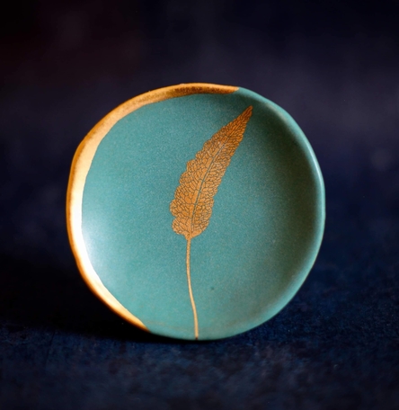 Gorgeous, collectible little trinket dishes handmade from stoneware clay and glazed in white, with a hand-painted 22k gold lustre accent on the side. There is a hook on the back so it can be wall mountedd